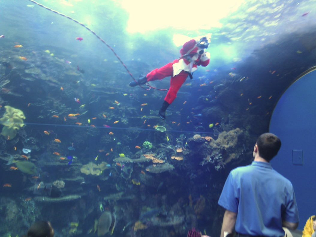 While I was installing a computer vision setup for the Accessible Aquarium project at the Georgia Aquarium, I ran across a Kris Kringlian Tank cleaner. Fun!
