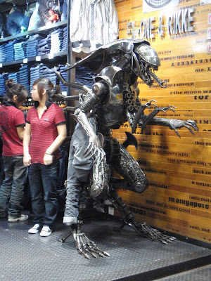 Recent immigrants to china may experience a shock when being greeted at abercrombie-like stores by man sized mecha-aliens and godzillas instead of hot, mostly naked guys, but in time you can adjust.