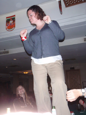 Here’s Kate doing a table dance. In the lower right, you can see my hand with a watch timing the incident – I think she had to dance for a full minute.