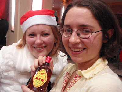 I set up a secret Santa program, which went surprisingly well. Amy, my secret Santa, is on the left, and I’m showing off her gift: a bottle of “Viagra”! We asked the Chinese people around, and it is, in fact, some kind of aphrodisiac liquor. I offered it to people jokingly, but everyone was so desperate for alcohol that it was gone within fifteen minutes or so. No reports back on whether it achieved its desired effect.