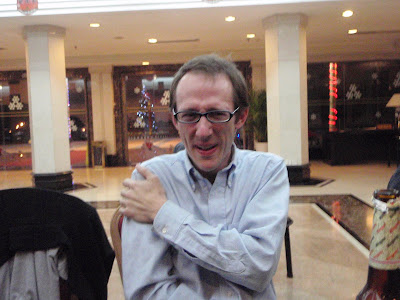 In an incongruous step, we spent a lot of the night playing truth or dare in the hotel lobby. In actuality, we were playing the drinking game ‘asshole’, but a lot of people weren’t drinking. If you couldn’t take a drink when you were supposed to, you had to subject yourself to a truth or dare. I know, you’re thinking, “Shouldn’t you stop playing truth or dare when you’re 14 or so?” but we had a great time. A lot of the dares involved slightly traumatizing the hotel staff: Andy had to pelvic thrust at them, and our friend Kelsey had to recline seductively on one of their couches and make bedroom eyes at the staff. I think at an American hotel, we might’ve gotten kicked out for our antics, but the Chinese staff was just puzzled. We were not good cultural ambassadors. Above, our buddy Daren takes off his shirt in preparation for a topless cartwheel.