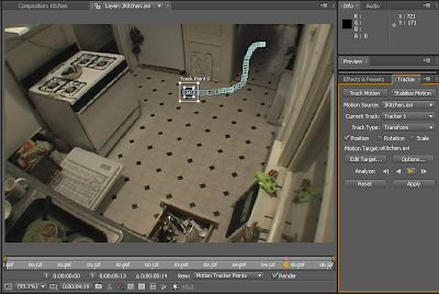 When the cameras were ready, i would release the tortoise and wait until she had stopped in a single location for more than 10 minutes. After fifteen paths had been recorded over several nights, the video was brought into Adobe After Effects. I grouped the recorded trials by room location and analyzed the location of the tortoise in each frame by using After Effects’s built in Motion Tracker. This left each clip with a custom motion path (group of keyframes representing a specific location and time) to which i could attach a particle generator. The final effect is that wherever the tortoise moved in the room, a bright path will be overlain with the thickness of the path demonstrating the tortoise’s current speed (thinner lines=faster motion).