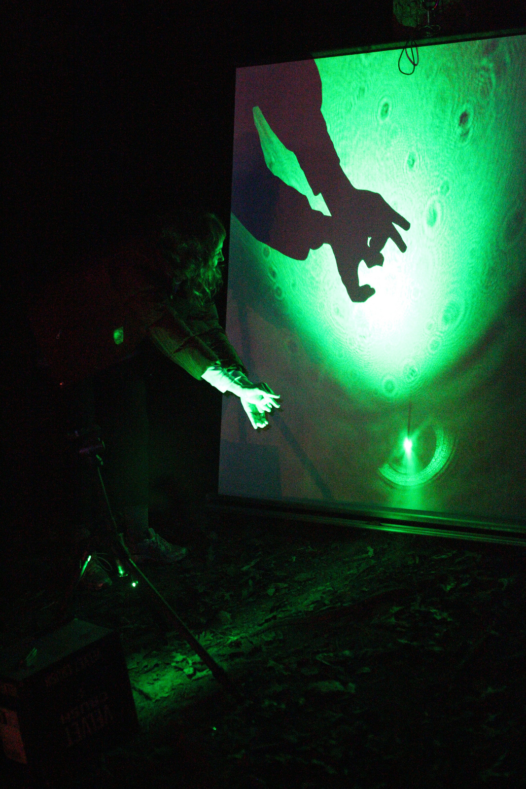 On November 1, I held our third annual “Analogue Retreat” in the woods for people from my digital media program. It gave us a chance to discuss digital design outside the traditional structures built into most digital media. It also offered first hand encounters for envisioning technology use in new natural contexts. One of the highlights was using our laser pen, some duct tape, and a syringe to create a projection microscope for playing with shadow puppets and microbes!
