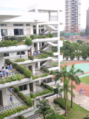(ANDYUPDATE: I like how almost every sentence ends with an exclamation point! They have students read these bizarre dialogues over the loudspeakers almost every day. So sometimes we get to wake up to weird shouting, exclamation point, dialogues between 2 kids over the loud speakers reminding us that exercise can lose weight and that they are fond of the shuttle cock.)And here’s another school in the area. Presumably, this is where they teach the mutant children to speak English.