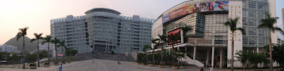 We’d like to show you around of our little part of Shenzhen, which is called Yantian. Pictures of Minsk World, the resident amusement park/abandoned Soviet battle ship, shall be forthcoming. Here’s the huge, imposing, but impressive government building which is our main landmark:And a warped panaroma of the big town square: