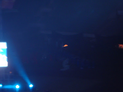 While the extravaganza in the front was going on, our attention was breifly focused on the backstage where a guy instantanouelsy burst into flames and began running around. I guess he was okay, no one really seemed to mind. Perhaps it is possible to over-gyrate.