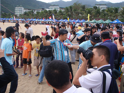The korean team let out this crazy hyper-kite, built from a string of many kite attached about 2 meters apart and stretching 500 meters into the clouds! They had 6 guys working on the kite at any given time.