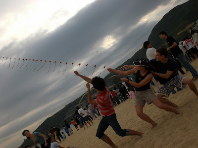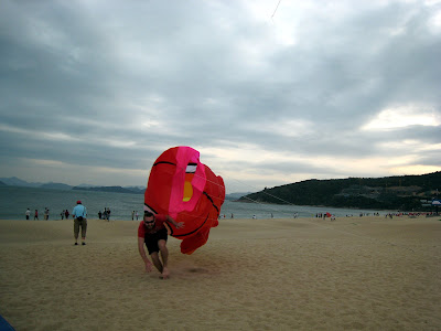 My other favorite kite at the fest started out as “Everyone’s favorite Basketball man, YAO MING!” So it was a little yao ming head with some legs, but then his head blew off into the ocean and there was just a flying pair of legs. Then later 3 more pairs of flying legs came up to join it.