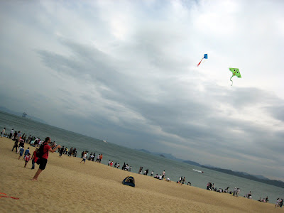 The most dramatic “kite fight!” happened when my kitemy kite fly directly over the korean super kite and crashed. Instantly some dudes went racing for my kite and which i figured would be to lift my kite back up and send it up. I kept shouting at them and thanking them, when one dude pulls out his big knife and just slices my kite right off. But that is what you have to expect when you enter the dark world of professional kite flying. One moment you are flying up above the clouds but one wrong move and your life line will be sliced!