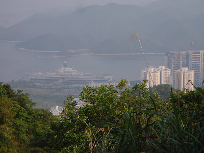 What did that crazy Min squirell away today? Oh its our giant Battleship/fun park, The Minsk! While we haven’t yet been to the humongous Air Craft Carrier parked next to us, we are getting closer and closer to actually just taking a true picture of it to post here. For now, though, BE INTRIGUED! by the leviathan, colorful archway guarding the entrace to our little section of shenzhen. also BE ENTHRALLED by this far away, misty, enigmatic picture!