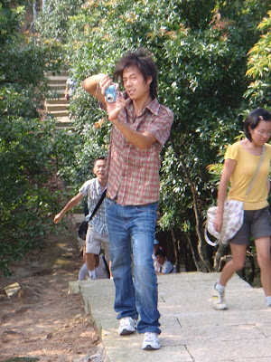 Then we had to walk. A lot of people like to hike up mountains, but this mountain has stairs. Stairs for tiny chinese people. Stairs for people with tiny chinese feet. Stairs for people who weigh between 80-110 pounds. Stairs for people who must have hollow bird like bones to be jogging cheerfully past us at an 87 degree angle.