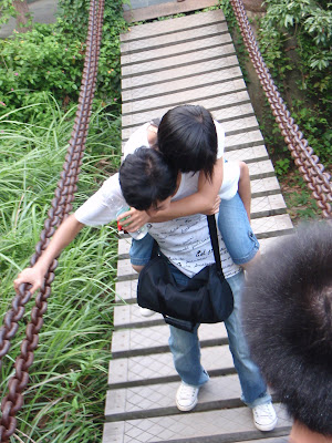 They had a super fun bridge but some girls were apparently too wimpy to cross on their own.